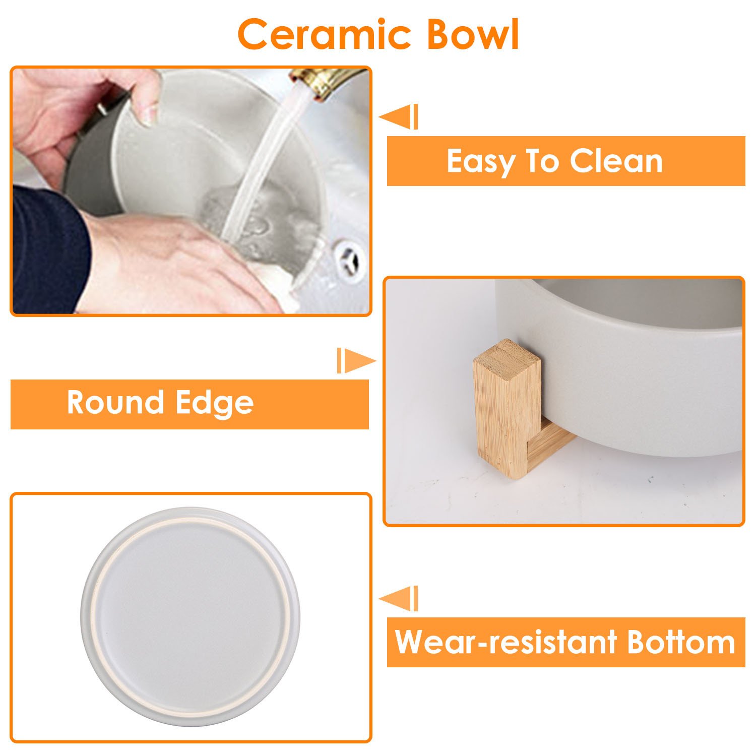 *Decorative Design*:The grey ceramic bowls and the minimalist wooden stand not only provides a feeding solution,but also adds a touch of elegance to your pet's feeding area.